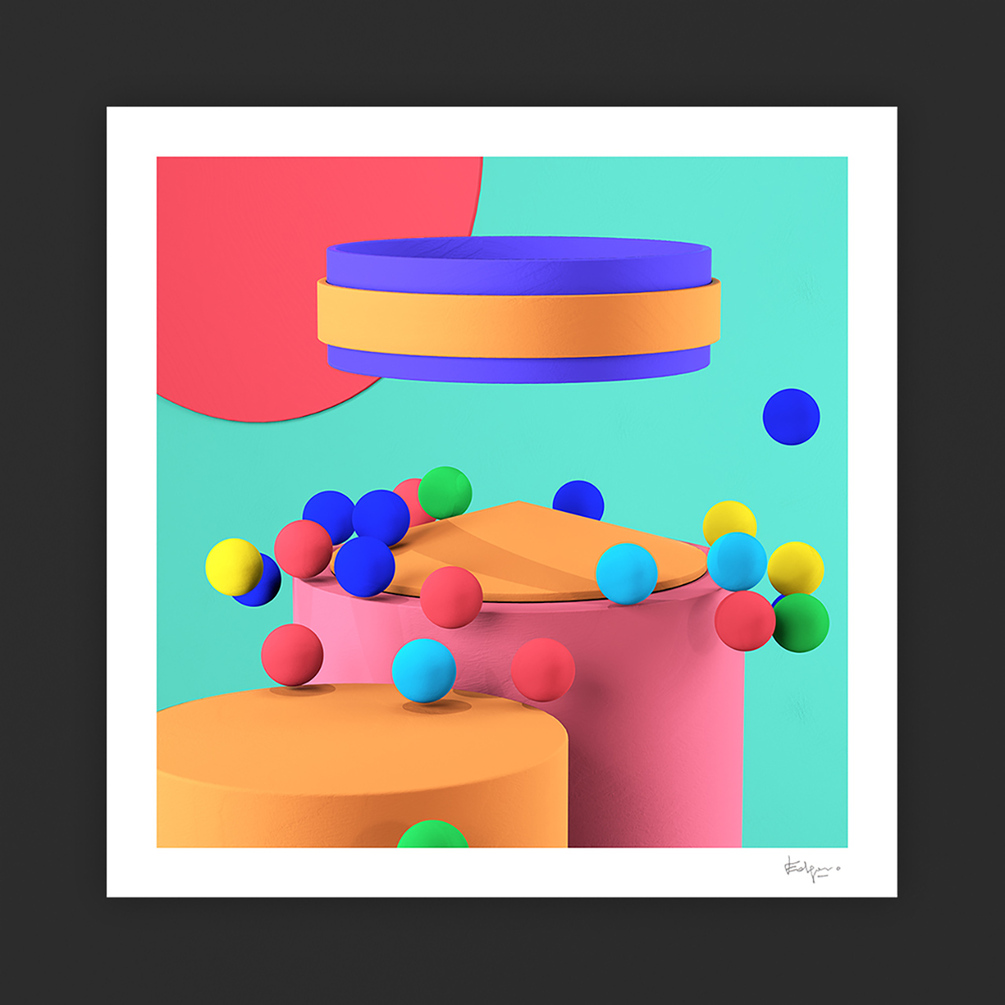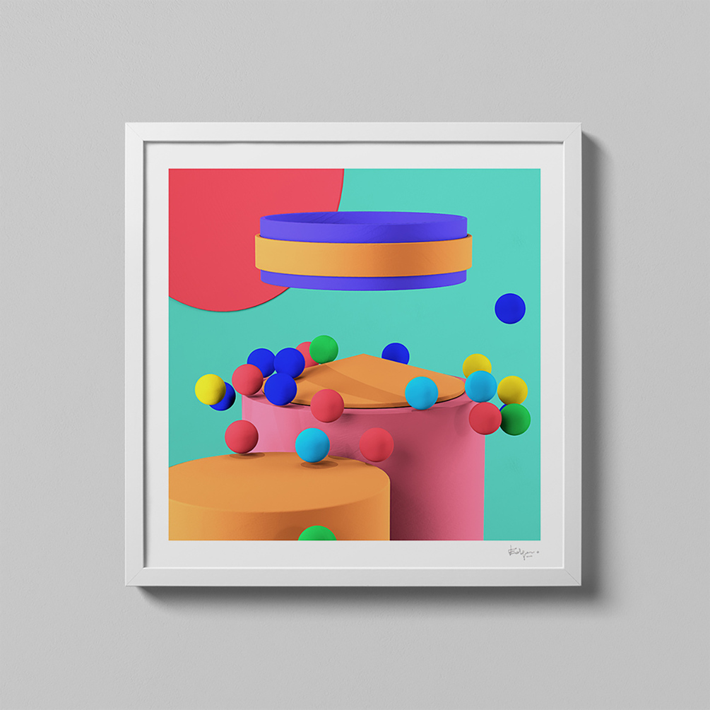 The perception of colours, shapes and how they interact with space, the surreal representation of reality filtered through the undefined senses; how, even in simplicity, a child's mind can often create a dreamlike dimension, almost detached from the object's function, from what it was designed for. A series of video and printed works in which the viewer is immersed in a surreal world, defined by animated 3D elements that interact with each other, artistically interpreting what a child might perceive and process.